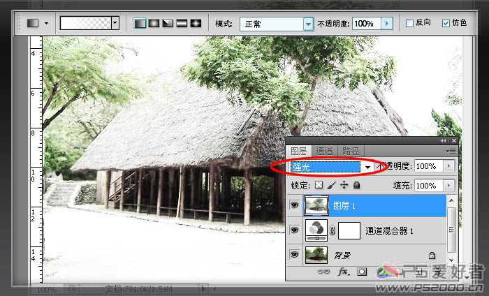 3、在最上方新建图层,按ctrl+atl+shift+E盖印图层,改为“强光”模式。