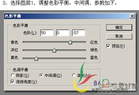 + B 调色色彩平衡,把蓝色调到最大如下图。