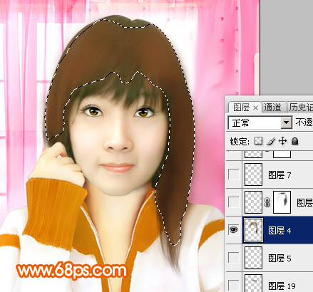 18、新建一个图层,把前景颜色设置为:#814B26,选择画笔工具把头发部分涂上一层底色,效果如下图。