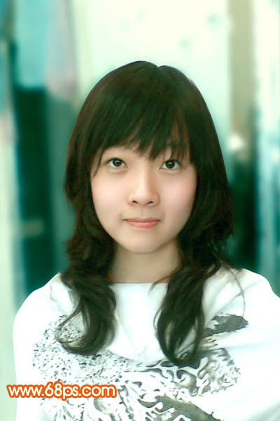 9、新建一个图层盖印图层,选择涂抹工具稍微把头发部分涂顺一点,然后用减淡工具把人物脸部的高光部分涂亮一点。背景部分可以适当模糊,也可以不做处理。