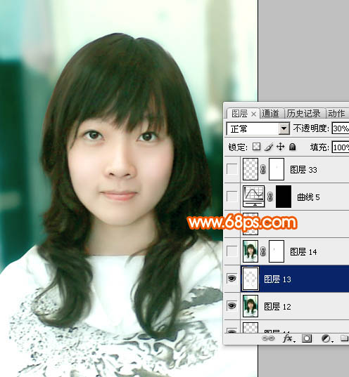 + Alt + ~ 调出高光选区,新建一个图层填充白色,图层不透明度改为:30%,效果如下图。