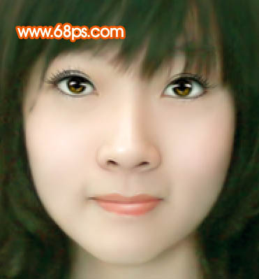 14、新建一个图层,加上睫毛,脸部的处理基本完成,大致效果如下图。新建一个图层,盖印图层。用钢笔工具把人物头部抠出来,复制到新的图层。