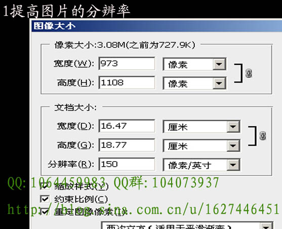 > 图像大小,参数设置如下图,提高图片分辨率。