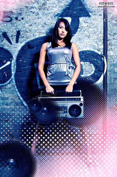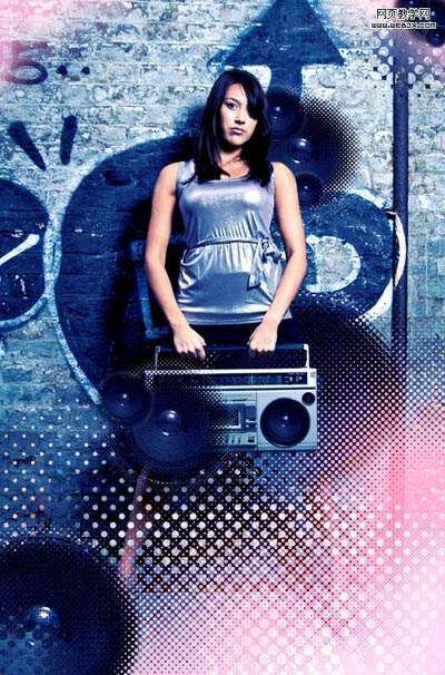 13、再做一些细节调整,这里把原来做的一个半调图案放到美女头部右侧。