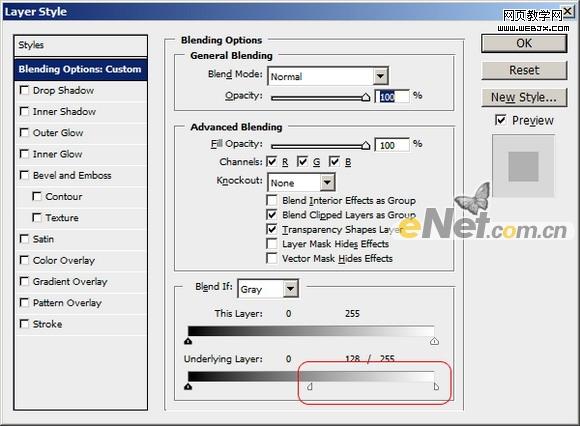 8、按住Alt键,拖动从向左底层设置的白色输入滑杆。你不会看到任何效果,但是这还有助于我们预览最后结果,来增加在下一步颜色的图像。