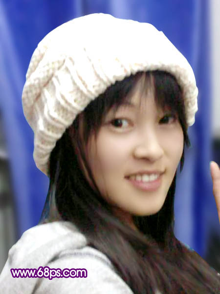 6、新建一个图层,盖印图层,选择涂抹工具,涂抹工具不透明度设置为20%左右,把脸部有杂色的部分涂抹干净。然后用套索工具选出嘴巴部分适当羽化后适当调红。然后选择加深工具适当把五官部分轮廓加清晰一点。这一步处理起来可能比较费力,不过五官部分很重要,一定要有耐心。
