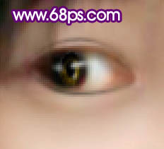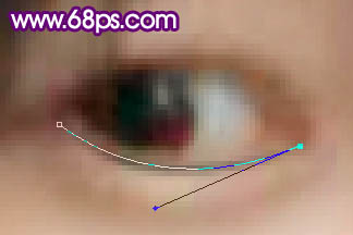 7、眼睛部分的处理,新建一个图层,用钢笔勾出图10所示的路径,然后用1个像素的黑色画笔描边,适当模糊处理,加上图层蒙版,用黑色画笔擦掉不需要的部分,如图11,同样的方法制作双眼皮。然后用减淡工具涂出眼珠的高光,另一只眼睛的处理方法相同,效果如图12。眼睛部分详细教程请参考:眼睛部分处理详解。