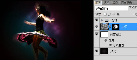 在渐变图层上新建一个图层,命名为“云彩层”,确保前景色,背景色为黑白色。执行:滤镜