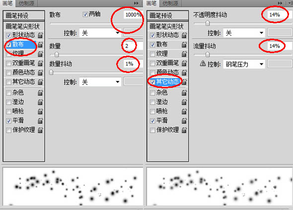 4、新建一个组命名为“点线”,在组内新建图层“点1”,设置画笔预设,参数设置如下图。