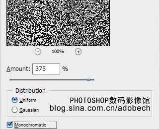* 300 像素,用黑色填充。执行滤镜/杂色/添加杂色,参数设置如下图。