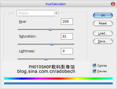 3、按CTRL+U调出色相/饱和度命令,参数设置调节如下图: