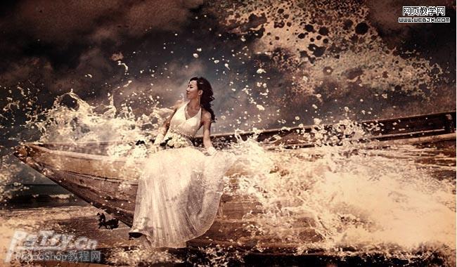 作者合成的非常细腻,很多细节的处理都值得借鉴,如水面倒影的处理部分,作者先制作好水波纹理,然后把倒影部分用置换和动感模糊滤镜特殊处理,