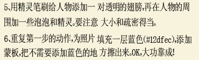 5、用精灵笔刷给人物添加一对透明的翅膀,再在人物的周围加一些泡泡和精力。要注意大小和疏密得当。
