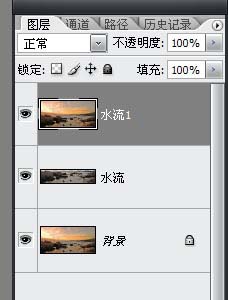 7、复制背景图层,调整图层顺序到最顶,命名为“水流1”。