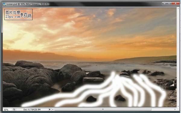 12、在这个图层上用画笔画水流,大概在60象素就行,画好如图。
