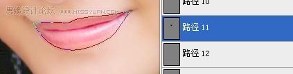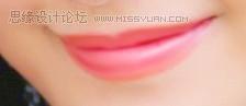 嘴唇,钢笔工具,建个路径转为选区,适当羽化, 进行色彩平衡调整,+红,得到如下: