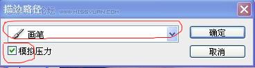 ,用黑色100 %硬度2像素的黑色画笔描边路径(勾选模拟压力)。