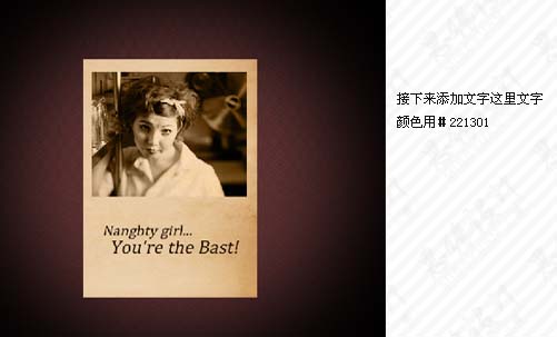 8、接下来添加文字,文字颜色为:#221301,效果如下图。