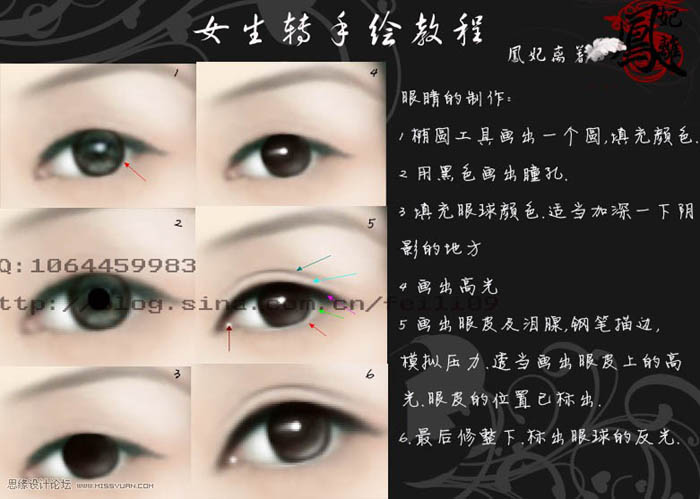 C、填充眼球颜色,适当加深一下眼影的地方。
