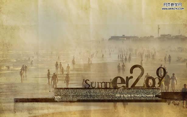 本教程制作过程比较简单。用一些暗沉的颜色来渲染照片的怀旧感,再加上一些褪色的纹理等来突出旧的感觉。最后装饰一些文字,效果就出来了。