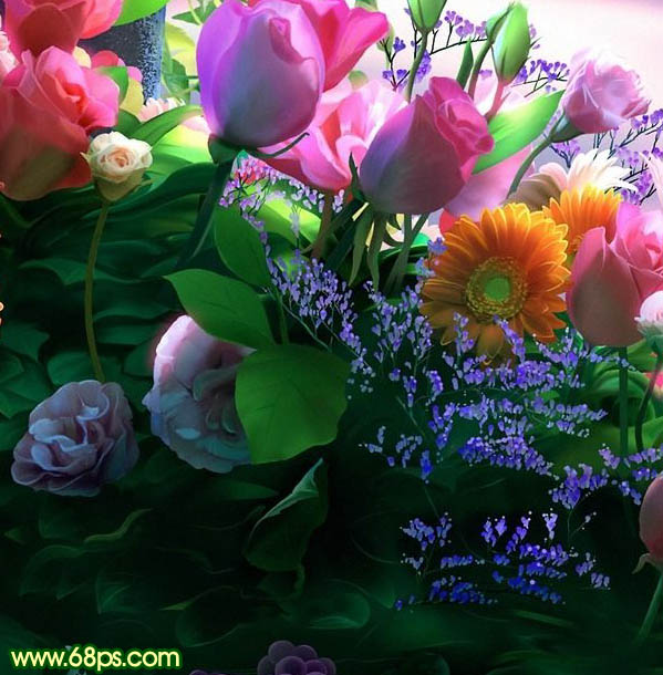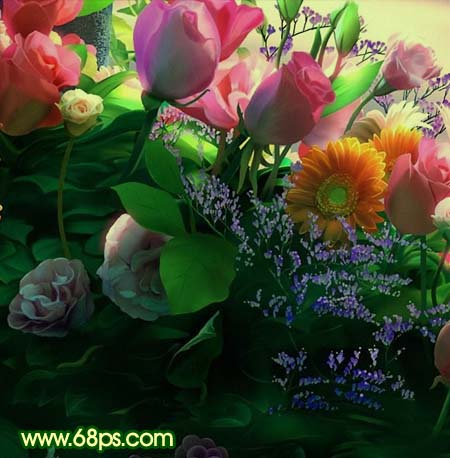 3、打开下图3所示的鲜花素材拖进来,放好位置,把图层混合模式改为“正片叠底”,效果如图4。