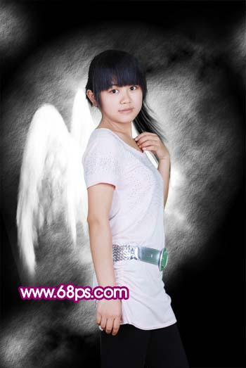 + Alt + ~ 调出高光选区,按Ctrl + J 即可抠出翅膀),放到人物图层的下面适当的变形处理并复制做成翅膀效果,如图11。