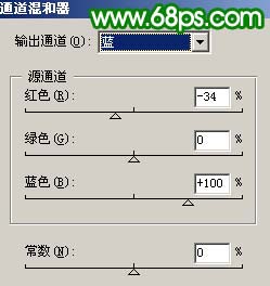 1、打开原图素材,创建通道混合器调整图层,对红色及蓝色调整,参数设置如图1,2,效果如图3。