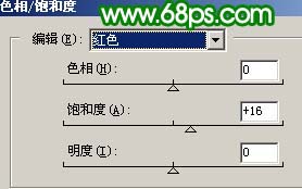 4、创建色相/饱和度调整图层,对红色进行调整,参数设置如图9,效果如图10。
