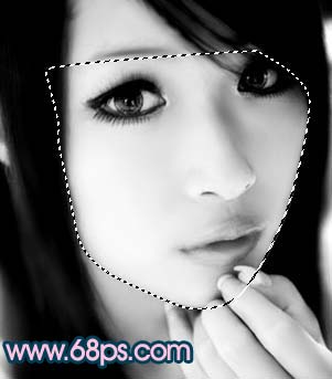 6、新建一个图层,用钢笔工具抠出脸部的轮廓,如图8,转为选区后执行:编辑
