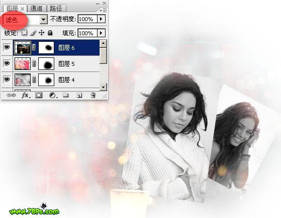 5、最后一张素材图,同样的做法,模式为滤色,加上图层蒙版用黑色画笔擦出人物。