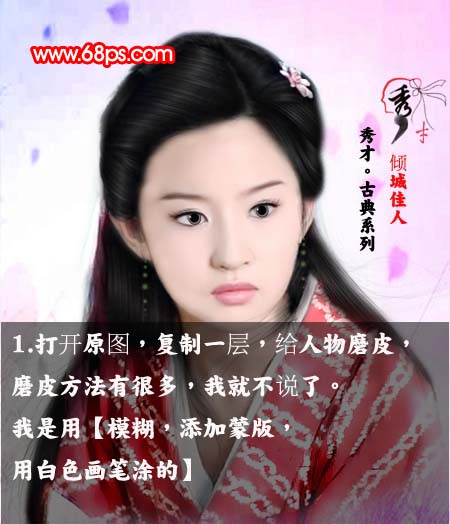1、打开一张图复制一层,这是作图的习惯,然后给人物简单磨皮。