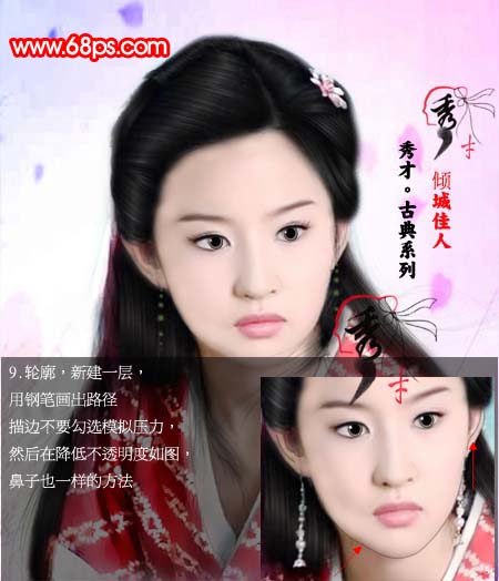 9、轮廓,用钢笔勾出路径,和头发一样,但是不要勾模拟压力如图。