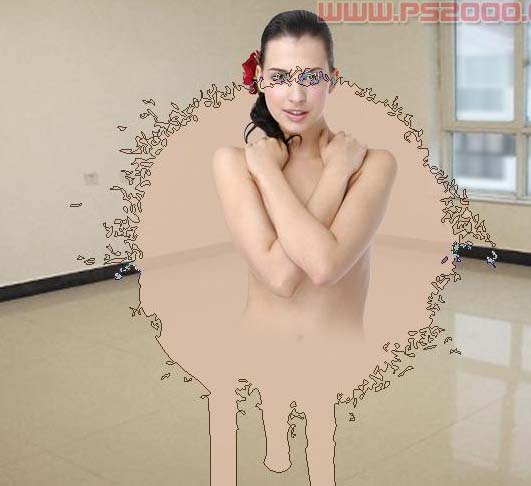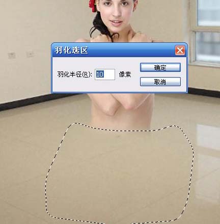 2、在人物图层,用套索工具选取人物下部分选区,如下图,按Ctrl