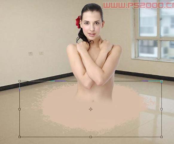 + T将流溅形状压扁,使之与地面透视关系一致。