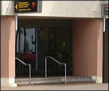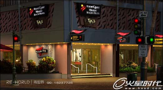 14、继续用减淡工具把一楼的招牌和红绿灯/垃圾桶处理好,我比较喜欢用手绘板来做,这样做出来有些部分亮一些,有些部分暗一些,显得更真实。