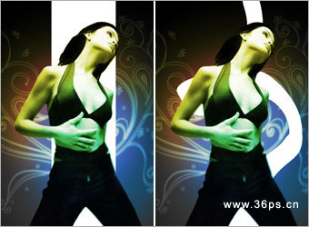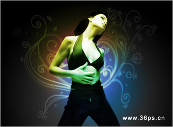 6、为美女胸前添加色彩:用上一步的方法在美女胸前添加2个类似的图层,颜色分别是