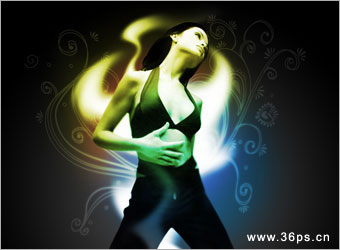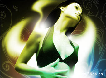 9、为美女添加亮点:在所有图层之上新建一个图层,使用笔刷工具,选择一个柔边的画笔,用白色为美女周边添加一些“亮点”。