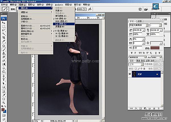 1、先打开原图,把图像色彩模式改为Lab色彩模式。