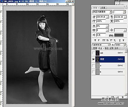 3、选择通道面板中的明度,然后Ctrl+A全选,Ctrl+C复制明度通道。