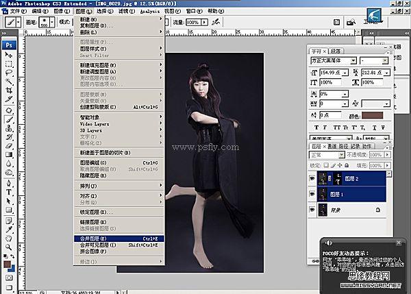 8、按住Ctrl选中图层1和图层2,合并图层。