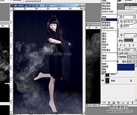 16、然后选择图层混合属性中的滤色模式,使烟雾叠入画面。