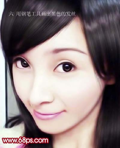 6、用钢笔勾出黑色的发丝,选择画笔描边。