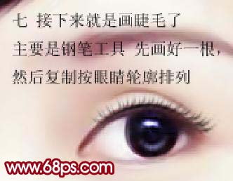 7、接下来就是画睫毛,主要是用钢笔工具画好一根然后复制,按眼睛的轮廓排列。