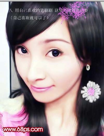 8、新建一个图层,在人物头发刷上好看的笔刷。
