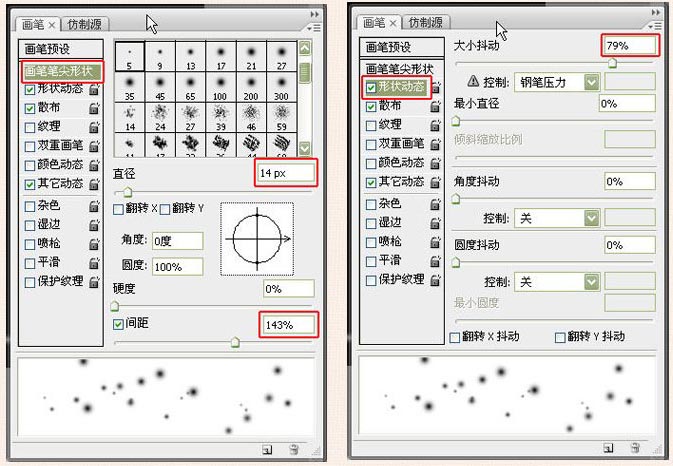 笔刷设置如果你刷上星星笔刷请点这里下载。