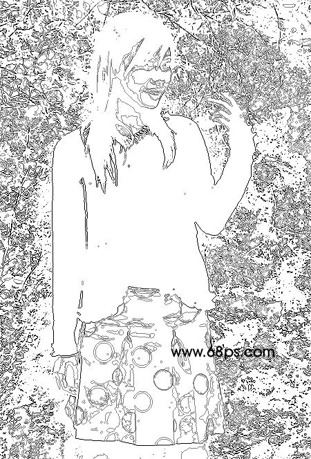 1.打开原图按Ctrl + J 复制一层,然后执行菜单:滤镜 > 风格化 > 等高线 参数设置如图1,确定后按Ctrl + Shift + U 去色,效果如图2