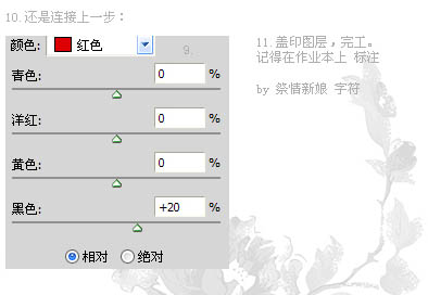 10、新建可选颜色调整图层,对红色调整,参数设置如下图。