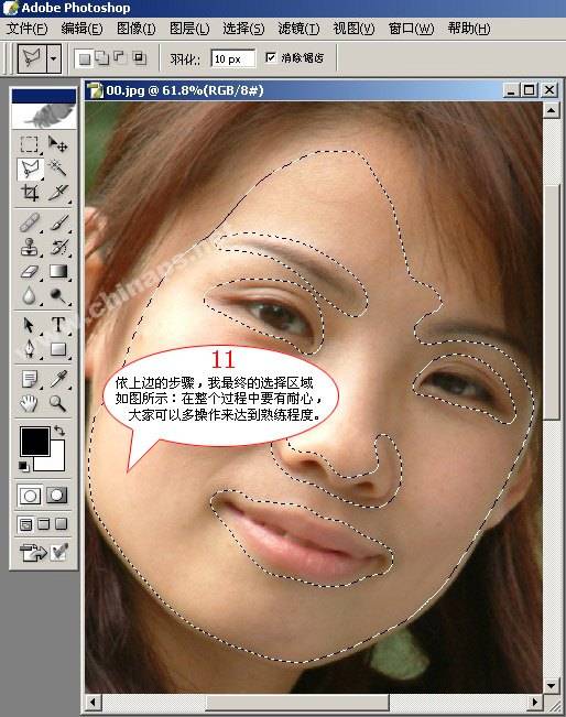 11、依上边的步骤,我最终的选择区域如下图所示。在整个过程中要有耐心,大家可以多操作来达到熟练程度。