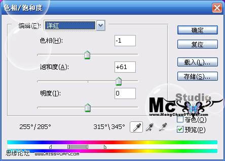 2、再复制一层,创建“色相饱和度”调整图层,参数如下,记得涂抹蒙版,被单的颜色不需要改变,得保留。效果如下: