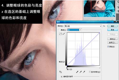 4、调整眼球的色彩与亮度。在选区的基础上调整眼球的色彩和亮度(见图3)。